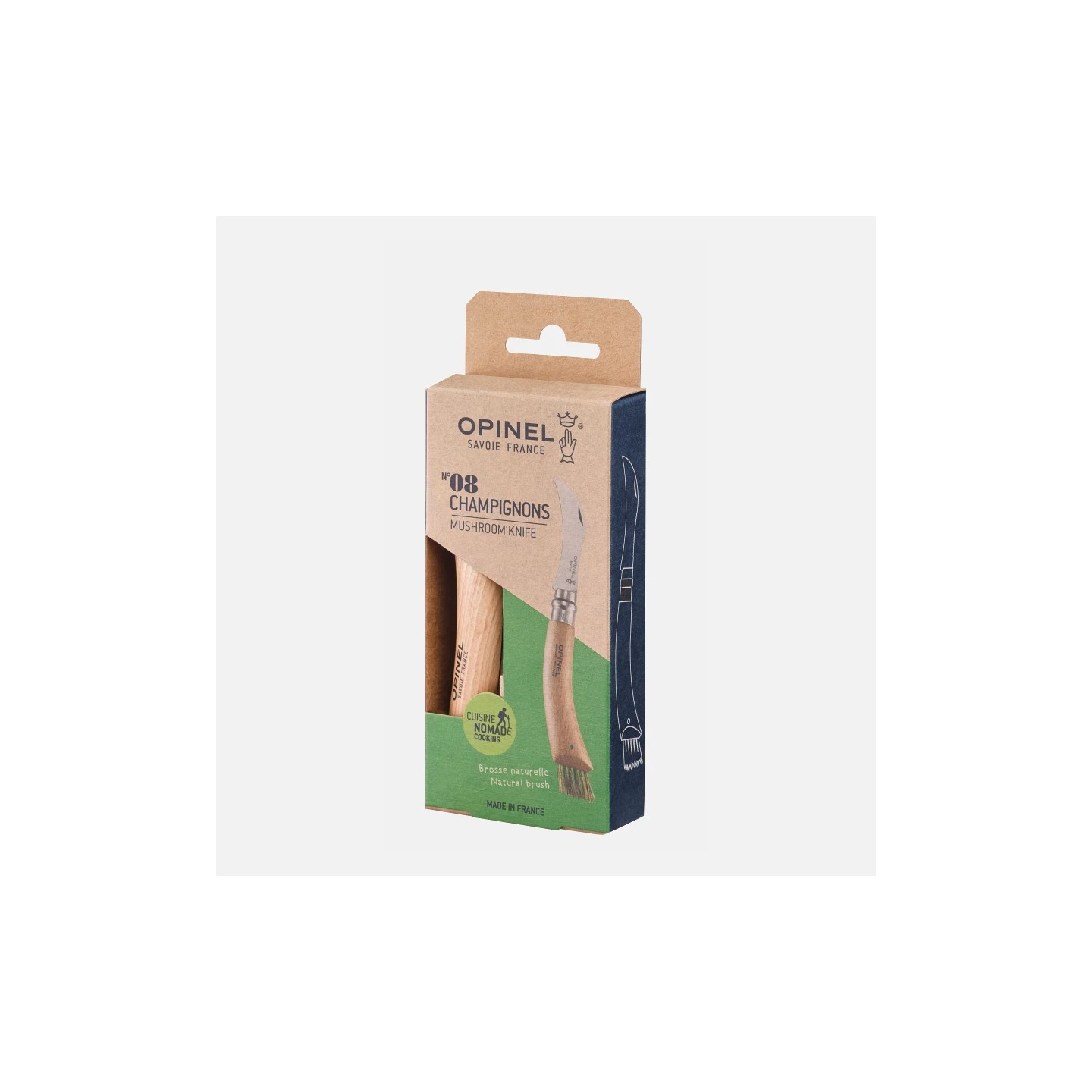 Le Couteau à Champignon Opinel N°08 est spécialement conçu pour la cueillette des champignons. Sa lame incurvée en acier inoxydable permet de couper facilement les champignons sans les abîmer.