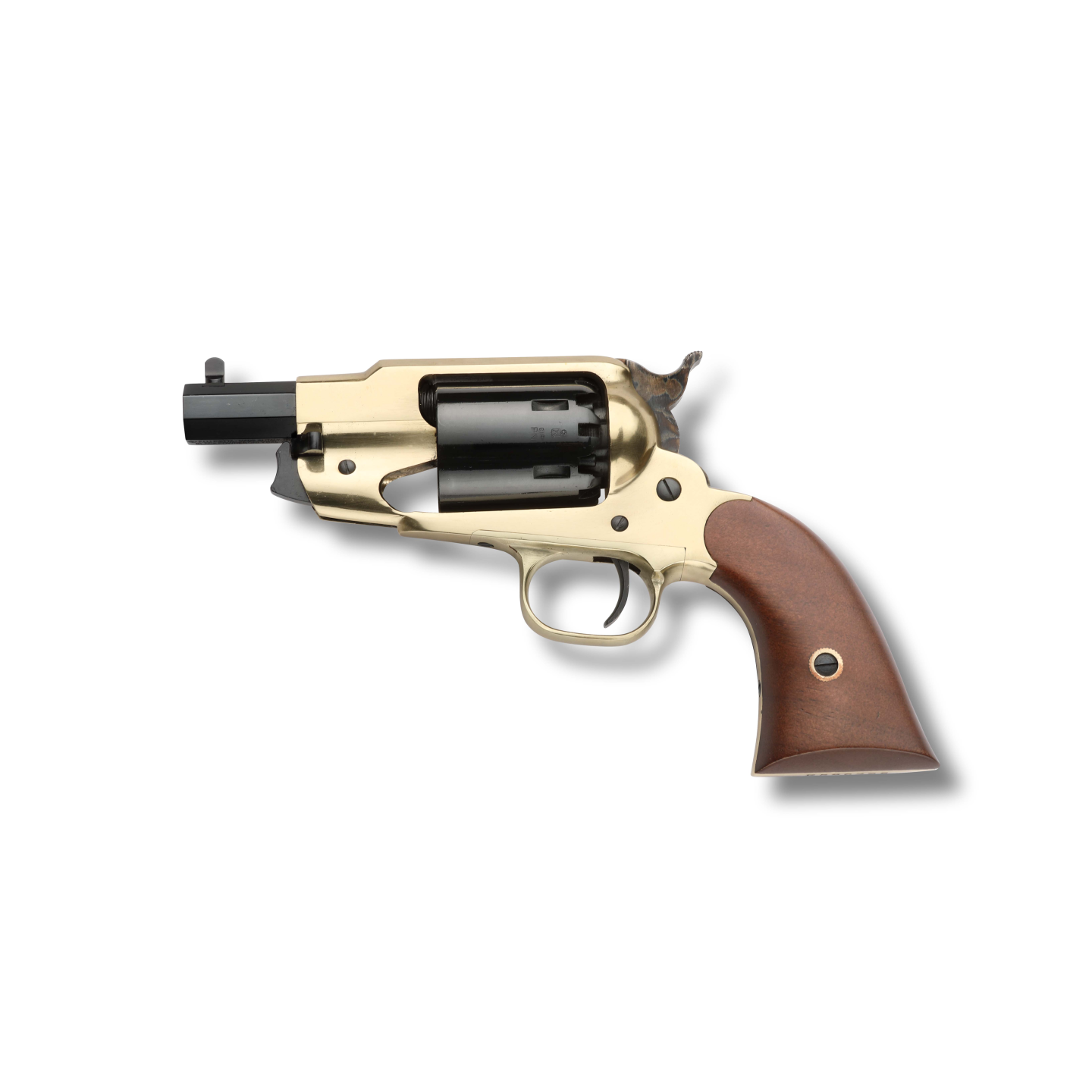 Son barillet 6 coups et sa mécanique simple action favorisent une manipulation fluide. Le canon octogonal court améliore la maniabilité sans sacrifier la puissance du calibre .44. La crosse en bois (souvent noyer) et la carcasse en laiton (ou acier selon finition) lui confèrent une allure classique et élégante.